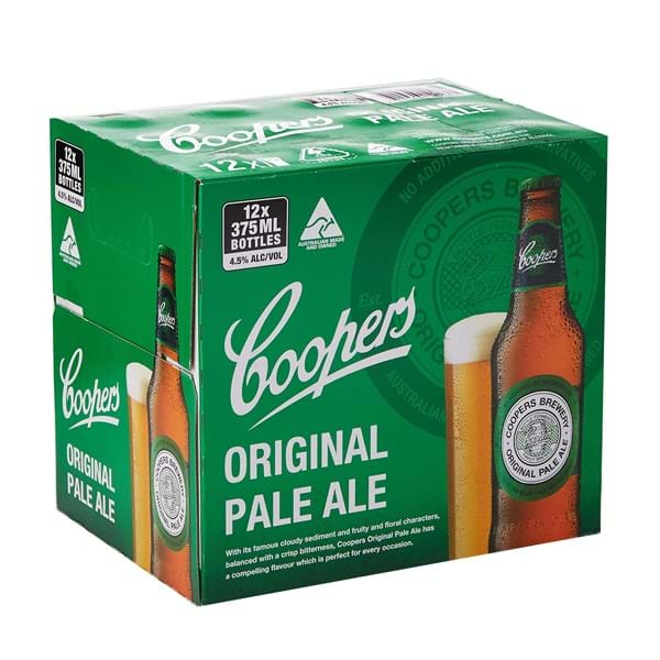 'Coopers Pale Ale The Original Pale Ale. Beware of pale imitations. Guaranteed to turn heads, this is the beer that inspired a new generation of ale drinkers. With its fruity and floral characters, balanced with a crisp bitterness, Coopers Pale Ale has a compelling flavour which is perfect for every occasion.'